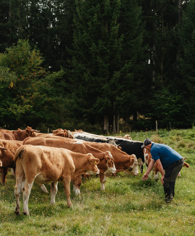 Landwirt, Forstwirt, Gastwirt – das alles trifft auf Gerhard Zechner zu. Alle drei Wirtschaften betreibt er gemeinsam mit seiner Frau Susanna und mit Begeisterung. Die Nähe zur Natur ist dabei stets zu spüren, ob auf „Zeckis Hütte“ in Neumarkt in der Steiermark oder wenn Gerhard von seinen Ochsen erzählt. Deren hochwertiges Fleisch mit Biss und viel Geschmack kommt später als Ja! Natürlich Bio-Weide-Genussrind ins Regal. Ein Produkt, das ihm gut gefällt – und er spricht aus Erfahrung. Selbst über drei Jahrzehnte im Betrieb hat er die Umstellung vom Mischbetrieb mit Milchkühen, Schweinen und Geflügel auf reinen Milchbetrieb miterlebt. Nach einer Phase mit Bio-Jungrindern ist er schließlich bei der Haltung von Bio-Weide-Genussrindern angelangt.