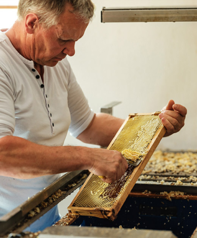 Langweilig wird dem Imker jedenfalls nie, denn schon im Frühjahr geht es wieder hinaus, um zu kontrollieren, wie die Insekten über den Winter gekommen sind. Einige Völker werden verkauft, sodass mit 500 bis 600 Stöcken in den Sommer startet. Dann geht das Honigschleudern wieder los. Und damit freut er sich schon auf die Ernte. Denn Honig steht im Hause Irregger jeden Tag auf dem Programm – ob auf dem Brot, im Kuchen oder am Arbeitsplatz.
