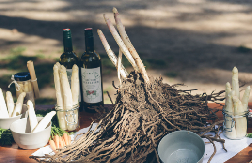 Erst nach 2 Jahren nach dem Pflanzen der Spargel-Setzlinge kann eine Ernte eingeplant werden. Während der Zeit lässt man die Spargelpflanzen Nährstoffe und Kräfte sammeln. Der oberirdische Pflanzenteil stirbt im Herbst ab. Der im Boden bleibende Spargelstock treibt im Frühjahr wieder aus. Während der Vegetationszeit bedarf es einer intensiven Pflege der Kultur. Dann bauen Markus Brandenstein und seine Feldarbeiter Dämme, damit die Stangen erdbedeckt in die Länge wachsen können und weiß bleiben („Bleichspargel“!). Über die Dämme werden Folien gelegt: Die weiße Seite reflektiert die Sonne, die schwarze hingegen wärmt die Pflanzen. So ist eine Regulierung möglich, die zu hohen oder zu niedrigen Temperaturen entgegenwirkt.