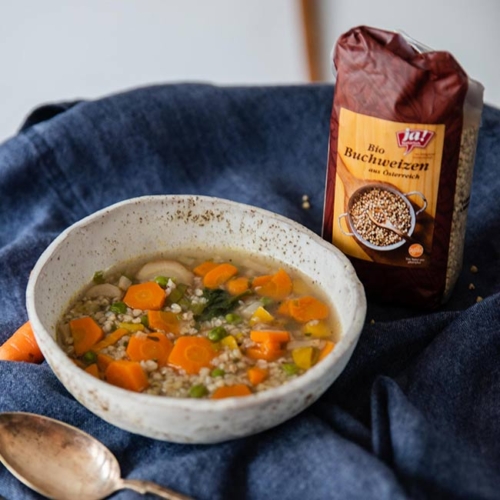 Buchweizen ist reich an Vitalstoffen, hochwertigen Mineralien, wie Kupfer und Mangan und leicht verdaulichen Proteinen.