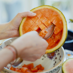 Bei allen Melonensorten wird nur das innere Fruchtfleisch verzehrt.