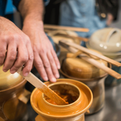 Janos zeigte, wie der Prozess der Fermentation funktioniert und bot seine Gemüse- und Kräuterkreationen aus den selbst gemachten Kimchi-Keramiken als Kostprobe an. Das Foodie-Publikum war begeistert von dem leidenschaftlichen Workshop, der in die gärenden Töpfe des Waldviertler Kimchimeisters Einblick gewährte.