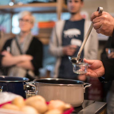 Tobias Judmaier, Bio-Koch und Foodwaste-Spezialist weiß es schon lange: Rohe Smoothies trinken war gestern, jetzt werden nährstoffreiche Suppen und kräftigende Brühen gekocht und gelöffelt. So schnippelte er vor versammeltem Workshop-Publikum saisonales Bio-Gemüse und verkochte es restlos zu köstlichen Suppen und Eintöpfen, die sich auch in der Mittagspause schnell zubereiten oder ins Büro mitnehmen lassen. Margit Fensl, Ja! Natürlich Ernährungswissenschaftlerin, ergänzte die Session aus der Sicht der Ernährungswissenschaftlerin, warum Souping ab sofort zum bewussten Genießen dazu gehört.