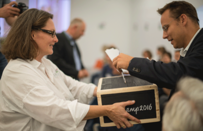 Zum Höhepunkt des Tages versammelte sich das Publikum zu abschließendem Pitch, Voting und Verleihung des Bio-Start-up des Jahres, das von Ja! Natürlich mit 5.000 Euro ausgeschrieben wurde. Die fünf Finalisten, unter allen Einreichungen im Vorfeld ausgewählt von der Ja! Natürlich Jury, präsentierten ihre Nachhaltigkeits- und Bio-Projekte in fünfminütigen Vorträgen: PALEO TO GO/Daniel Rudigier, NAHGENUSS/Micha Beiglböck, UNVERSCHWENDET/Cornelia Diesenreiter, DIE BIO-WIRTINNEN/Michaela Russmann und WURMKISTE/David Witzeneder.