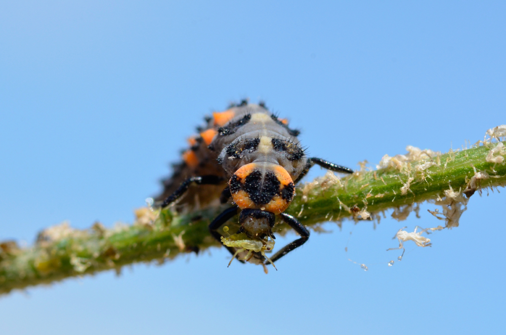 Der beliebteste Käfer in unseren Gärten ist ein besonders fleißiger Blattlausjäger. Zusätzlich frisst der Marienkäfer Spinnmilben, weiße Fliegen und andere Schädlinge. Um ihn zu fördern, sollte man nicht sofort im Frühling alle Blattläuse vernichten, sondern dem Marienkäfer ein paar übrig lassen.