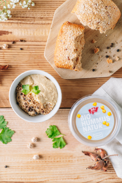 Wenn es einmal schnell gehen muss, empfehlen wir unseren Bio-Hummus, erhältlich bei Billa & BILLA Plus in zwei Sorten: die klassische Variante des Brotaufstrichs und einmal verfeinert mit aromatischem Curry. Die verwendeten Zutaten wie Kichererbsen, Sesampaste, Zitronensaft, Öl und aromatische Gewürze stammen zu 100 % aus biologischer Landwirtschaft.