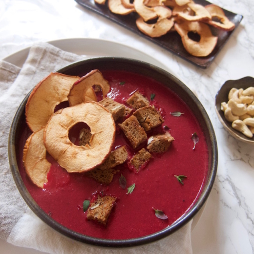 Neben knackigen Wintersalaten stehen Cremesuppen mit Maroni, Wurzelgemüse oder Kürbis zu Weihnachten hoch im Kurs. Für ein besonders cremiges Ergebnis ohne Milchprodukte sorgen ein Schuss Kokosmilch, eingeweichte und pürierte Cashewkerne oder etwas Mandelmus. Salate lassen sich mit Roten Rüben, Rotkraut, Orangen oder Blutorangen und gerösteten oder karamellisierten Nüssen edel herausputzen.
