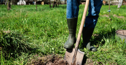 - Zuerst eine große Pflanzgrube ausheben, ca. 60 cm tief und mindestens ebenso breit.