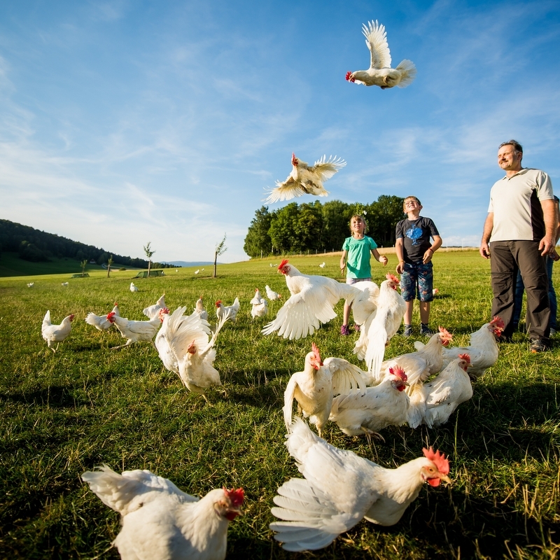 An den heimischen Bio-Bauern geht die Corona Krise nicht spurlos vorbei – sie haben alle Hände voll zu tun, in diesem Jahr der gestiegenen Nachfrage nachzukommen. Mit ihrem unermüdlichen Einsatz sichern sie mit allen Partnern in der Lieferkette die Versorgung mit österreichischen Eiern. Für die Hühner gelten die aktuellen Corona bedingte Quarantäne, Ausgehbeschränkungen oder Gesichtsmasken freilich nicht: Alle Bäuerinnen und Bauern halten die Ställe offen und bieten den Hühnern doppelt so viel Auslauf wie ihren konventionellen Artgenossen – sowohl im Hühnerhaus, als auch im Freien. „In den ersten frühlingshaften Wochen tummeln sich die Hühner besonders gerne an der frischen Luft, in der Sonne und im frischen Gras“, berichtet Ja! Natürlich Bauer Gerald Grimps aus dem oberösterreichischen Mühlviertel. Derzeit sind auch die Kinder der Familie zu Hause und erleben den Betrieb der Eltern noch intensiver mit als sonst.