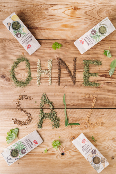 +++ Grün in Hülle und Fülle: Neue Gewürzmischungen aus heimischen Bio-Kräutern in Graspapier +++