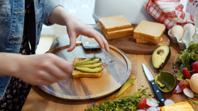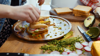 4Jetzt kann das Toastbrot belegt werden: Zuerst die Avocado, dann das Spiegelei, darauf die Radieschen und zum Schluss der Schnittlauch.