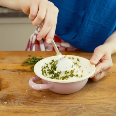 5Währenddessen den Dip zubereiten.