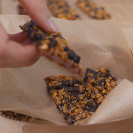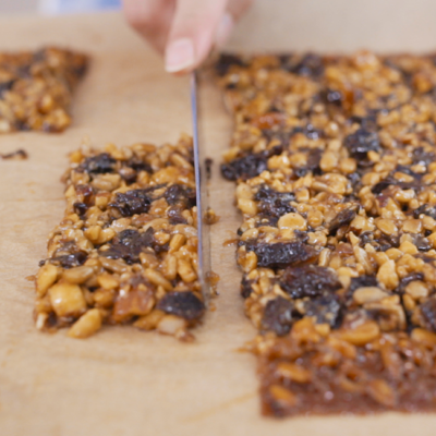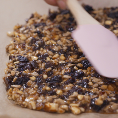 - Die Masse muss nicht unbedingt in die typische Müsliriegelform geschnitten werden. Zum Beispiel kannst du die Masse in Kreisen auf dem Backblech verteilen. So hast du leckere Müsli-Kekse für dein Frühstück oder als Energielieferant zwischendurch.