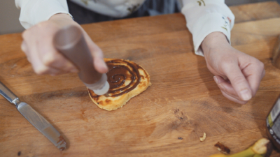 6Damit das Verzieren mit der Bananen-Nougatcreme besser klappt, kann diese in eine Spritzflasche gefüllt werden.