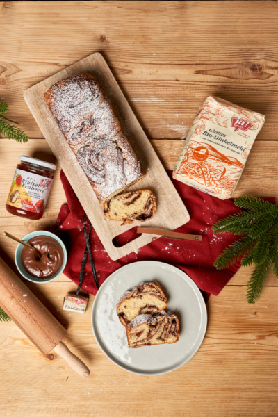 Babka mit Schoko-Erdbeer Füllung