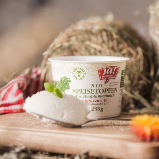 Topfen kann nur so gut schmecken, wie die Milch, aus der er gemacht wurde. Und Milch kann nur so gut schmecken, wie die Kühe gelebt und gefressen haben. In den Ja! Natürlich Topfen kommt nur beste Bio-Heublumenmilch aus dem Salzburger Land, von Kühen, welche 365 Tage Freilauf genießen. Dieser Standard ist strenger als gesetzlich vorgeschrieben und nicht nur für die Tiere besser. Wir finden, dass die Bio-Heublumenmilch auch viel besser schmeckt und freuen uns über die wertvollen Inhaltsstoffe. Mehr zu Österreichs höchstem Milchstandard – bei unseren Milchprodukten mit der „grünen Kuh“ gekennzeichnet – findest du hier.