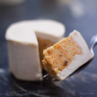 11Fertige Karottenküchlein für mind. 3 Stunden kühlen. Zum Servieren aus dem Ring nehmen und portionieren. Eventuell übrige Cashew-Vanillecreme zum Garnieren verwenden.