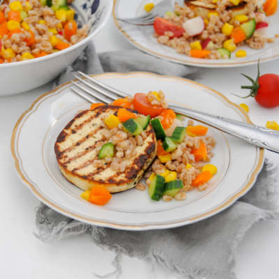 6Grillkäse auf dem Grill oder in der Pfanne anbraten.