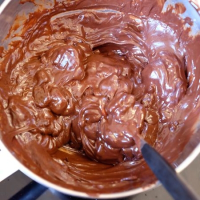 1Die Schokolade fein hacken und in eine Metallschale geben.