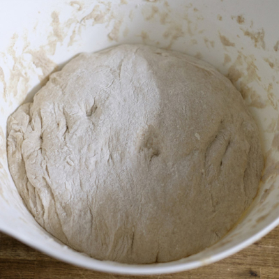 3Nach 18 Stunden kontrollieren, ob der Teig aufgegangen ist. Falls nicht, ist der Germ zu alt oder das Wasser tatsächlich zu hart. L In diesem Fall: Zurück zum Start und mit frischem Germ wiederholen.