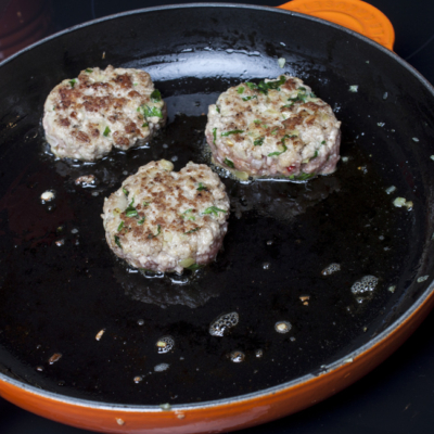 5Olivenöl in einer Pfanne erhitzen. Auf mittel-hoher Hitze die Laibchen auf beiden Seiten goldbraun braten. In den Backofen zum Warmhalten stellen.