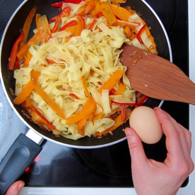 Es muss nicht immer Carbonara sein! Auch in anderen Nudelgerichten sorgt ein Bio-Ei für eine schnelle herrlich cremige Sauce. Anders als beim Rührei wird es nicht gekocht, sondern durch die gegarten Nudeln nur erwärmt.