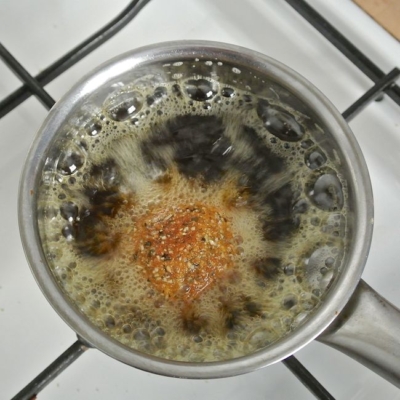 6In einem kleinen Topf Wasser aufkochen und bei mittlerer Temperatur sieden – nicht wallend kochen – lassen.