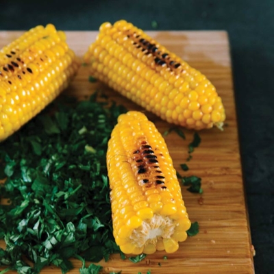 2Die Maiskolben mit etwas Olivenöl bepinseln und bei mittlerer Hitze auf beiden Seiten grillen, sodass sie eine schöne Farbe bekommen. Am besten schmeckt’s vom Grill, aber du kannst auch eine beschichtete Pfanne verwenden.