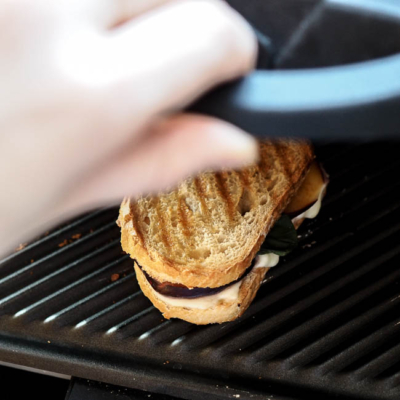 4Die Sandwiches in den heißen Plattengrill legen, mit Butterflöckchen bestreuen und knusprig toasten.