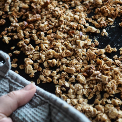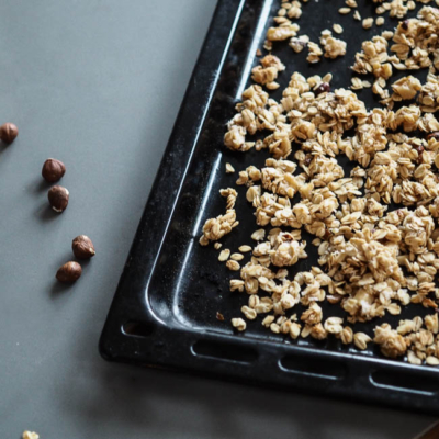 Diese Variante ist ein praktisches Grundrezept mir Haferflocken, Nüssen und Honig, das jederzeit mit Trockenfrüchten oder anderen Getreidesorten ergänzt werden kann. Übrigens: Der Honig ist durch Ahornsirup ersetzbar!