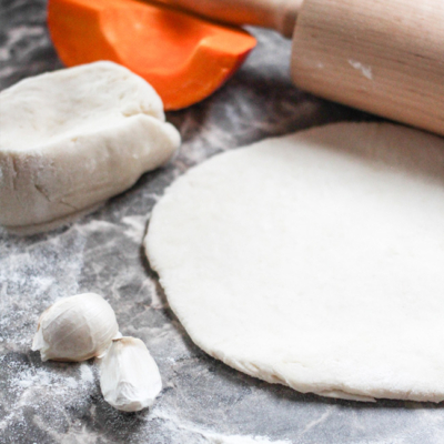 4Den Teig in drei Stücke teilen und jedes davon so dünn wie möglich ausrollen.