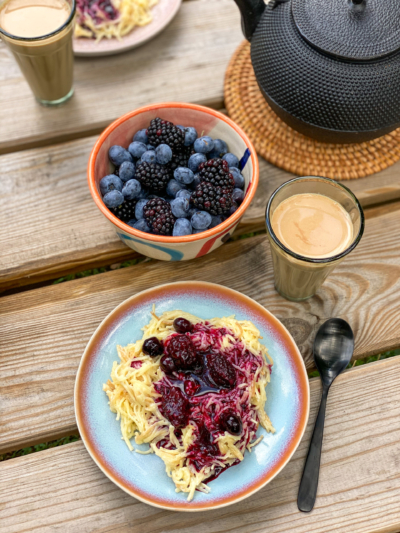 Wir empfehlen einen indischen Chai dazu. Herrlich!