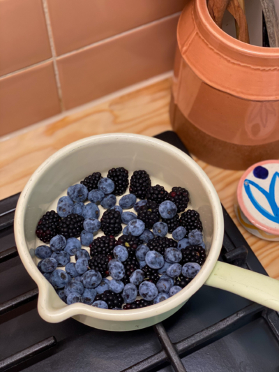 1Zuerst mit dem Beerenröster starten, dieser kann dann während die Nudeln kochen noch etwas eindicken und ist dann perfekt zum Servieren.