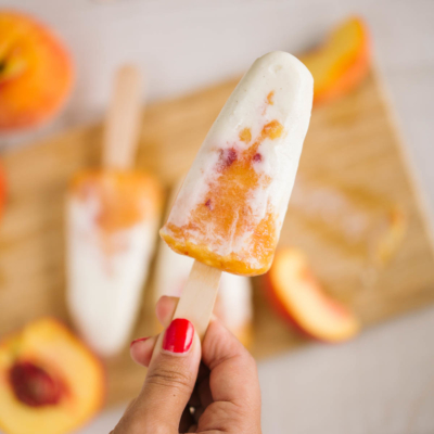 2Eisformen oder Joghurtbecher zur Hälfte mit Joghurt befüllen und den Rest mit dem Nektarinenpüree auffüllen.