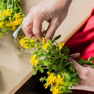 Das Johanniskraut ist das Heilkraut für ein angegriffenes Nervenkostüm. Hildegard von Bingen nennt es „die Arnika der Nerven“. Im Garten, auf Naturwiesen, an Wegrändern oder Böschungen, hoch hinauf auf den Almen, das Johanniskraut leuchtet uns mit seiner gelben Blüte entgegen. Hält man die Blütenblätter gegen das Licht, sind sie mit vielen „Tüpfel“ überseht und genau dieses „Tüpfelkraut“ ist auch das wirksame. In den Blüten steckt Hypericin, das dem Öl die rubinrote Farbe gibt. Johanniskraut wird als Hausmittel für körperliche und seelische Verletzungen sehr geschätzt. Das Kraut kann auf verschiedene Art und Weise angewendet werden. Als Tee, Tinktur, Öl oder Salbe, kann man sich seine vielfältigen Eigenschaften zu Nutze machen.