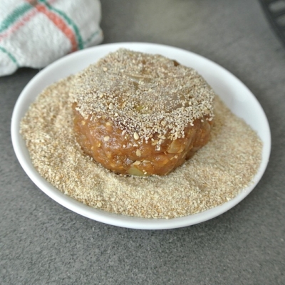 6Die Bällchen wälze ich rundherum in Semmelbrösel und backe sie ca. 1-2 Minuten in der heißen Pfanne in etwas Sonnenblumenöl rundherum an, bis sie eine schöne dunkelbraune Kruste haben. Nun kommen sie noch für ca. 10 Minuten in den vorgeheizten Backofen. Bei Zubereitung am Grill empfehle ich, sie 1-2 Minuten direkt anzugrillen und dann bei indirekter Hitze fertig zu garen.