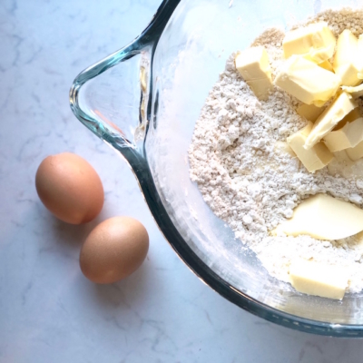 2Bio-Datteln klein und -Butter würfelig schneiden. Alle Zutaten mischen und zu einem glatten Teig verkneten.