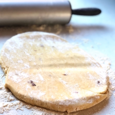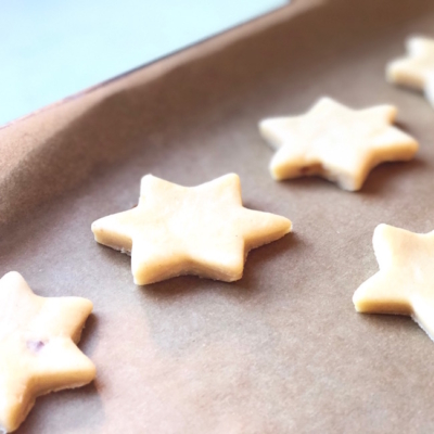 3Der Teig kann sofort verarbeitet werden. Arbeitsfläche bemehlen und Teig dünn ausrollen (da die Kekse gut aufgehen!)