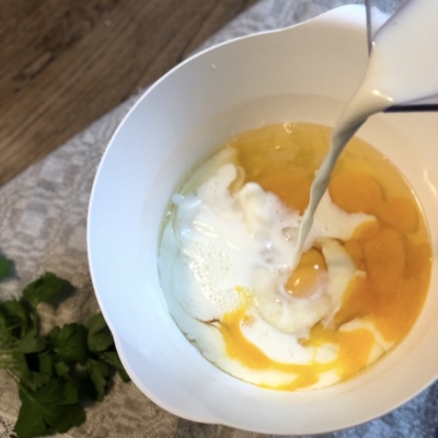 2Palatschinkenteig vorbereiten. Alles Zutaten dafür in einer Schüssel glatt rühren.