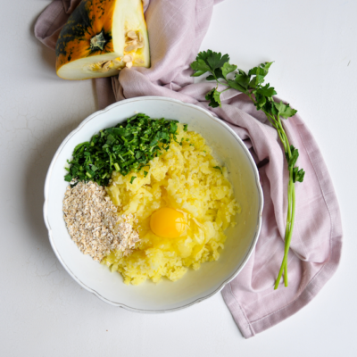 4mit Ei, Petersilie und Haferflocken vermengen.