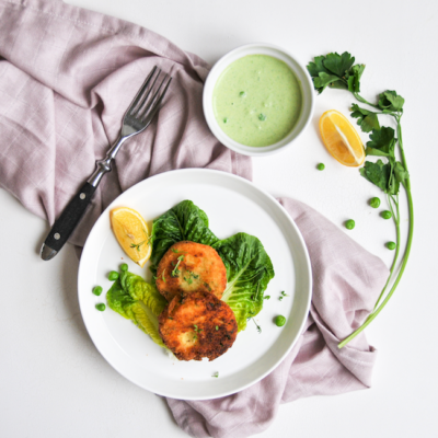 Wer keinen Erbsen-Ziegenfrischkäse-Dip mag, sollte die Laibchen mit der Ja! Natürlich Bio-Mayonnaise versuchen.