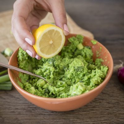4Mit Zitronensaft, Salz, Pfeffer und einem Schuss Olivenöl abschmecken.