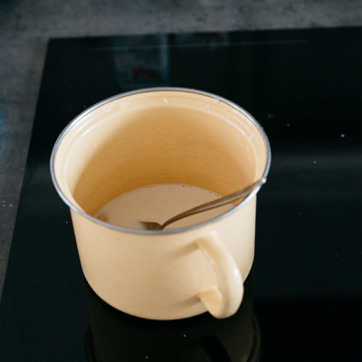 11Die Masse langsam bis kurz vor den Siedepunkt erhitzen (nicht zu heiß werden lassen!) kräftig rühren, bis sie dickflüssig wird. Unter Rühren etwas erkalten lassen und zu den Buchteln servieren.