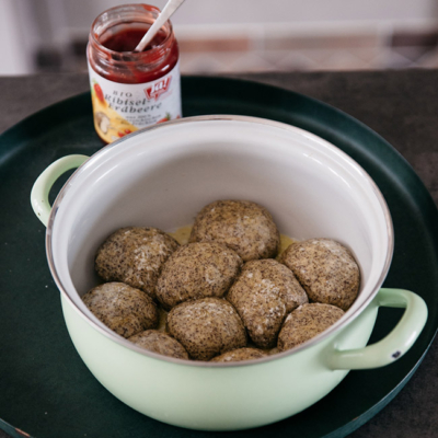 7Die Buchteln in einen Topf setzen und nochmals 20–25 Minuten gehen lassen.