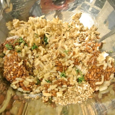 5Sesam und Thymian untermengen und nochmal mit Salz abschmecken.
