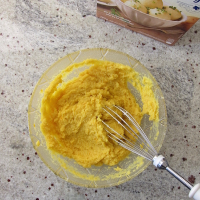 3Erdäpfelteig aus der Packung zügig unterrühren und ca. 5 Minuten stehen lassen.