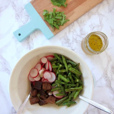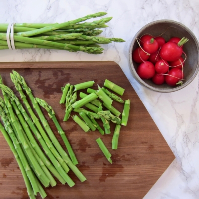 Bei Radieschen und Spargel gilt „besser under- als overdressed“ – die fein-aromatischen Gemüse sollten nicht im Salatdressing ertränkt, sondern nur damit beträufelt werden. Wer es gerne leicht schärfer mag, gibt 1 TL Ja! Natürlich Estragonsenf ins Dressing, für mehr Süße sorgen Honig und Ahornsirup.