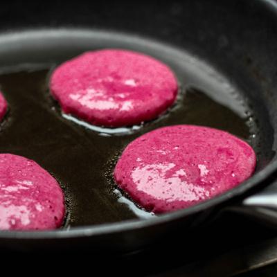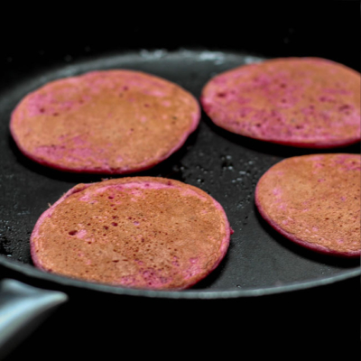 Diese Pancakes sind der Star auf jeder Valentinstags-Frühstückstafel oder ein köstliches Dessert. Mit ihrer tiefroten Farbe holen sie die Liebe sprichwörtlich an den Tisch – und da die schöne purpurne Färbung ganz natürlich zustande kommt, genießt man sie gleich noch lieber.