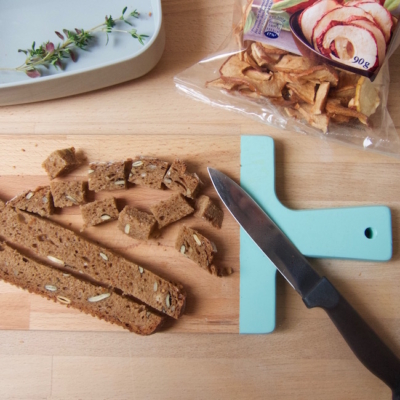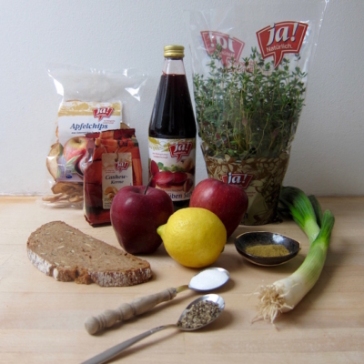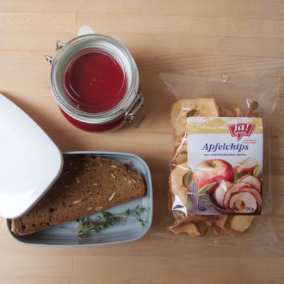 4Suppe, Apfelchips, Brot, und etwas Thymian mit ins Büro nehmen.