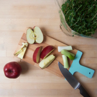 1Äpfel waschen, vierteln und Kerngehäuse entfernen. Frühlingszwiebel grob schneiden.